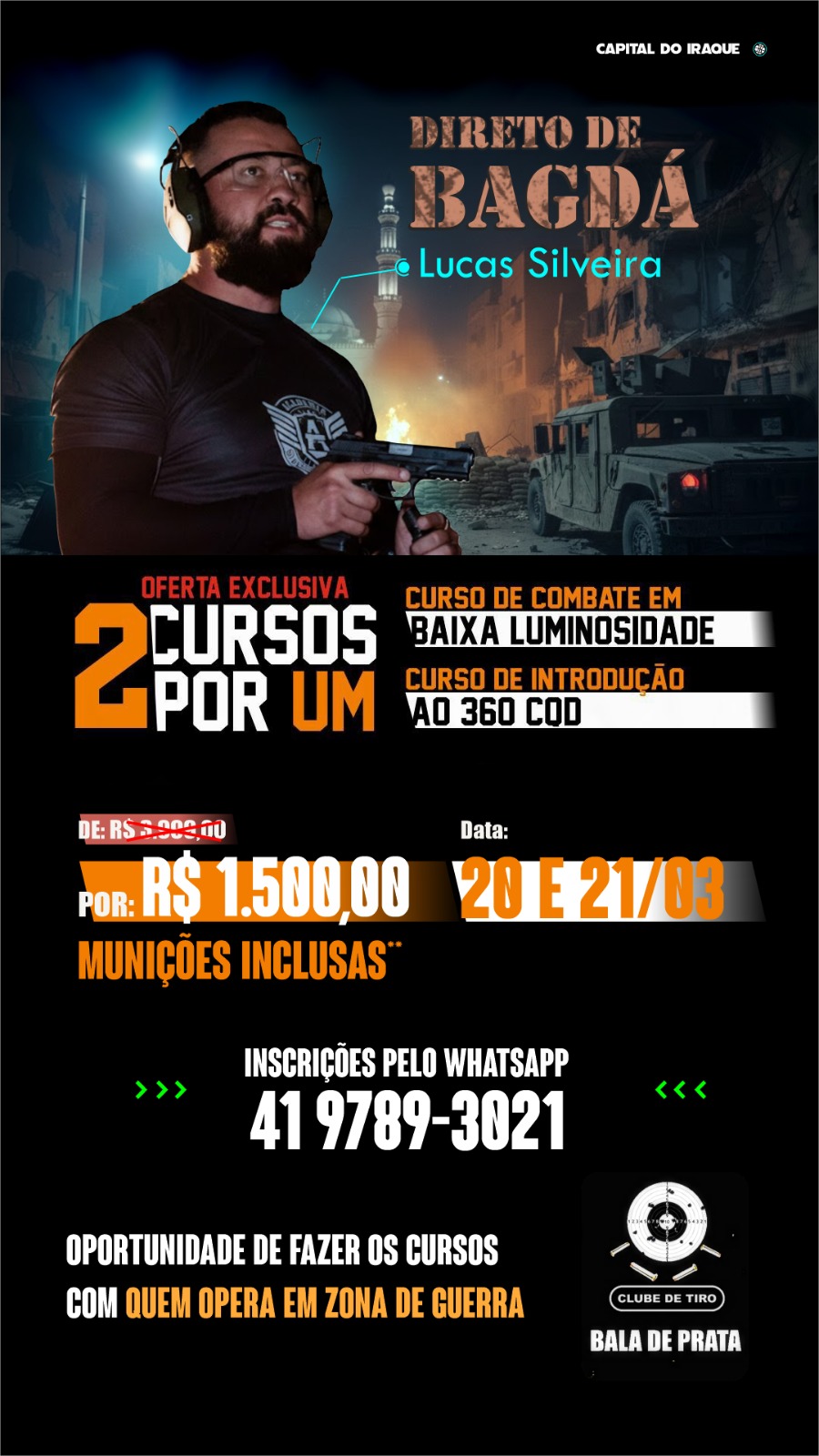 Público: Atiradores que já tem CR (certificado de registro exército) ou em processo de concessão.
